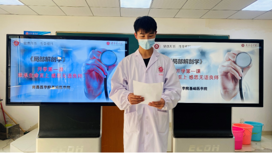 最后,在教师代表王向东老师的带领下,全体成员庄严宣读解剖学誓词:无言良师,授吾医理;敬若先贤,临如活体;正心恭行,追深辨细;德彰术精,修成大医。局解开课仪式在这庄重的宣誓声中拉下帷幕。